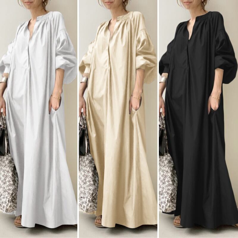 レディース ママ 女性 ファッション 韓国 北欧 おしゃれ かわいい 動きやすい 服 アパレル 海外 プチプラ 上品 モダン ナチュラル シンプル ミニマム マキシ丈 マキシ ロング ワンピース 冬 秋 Vネック ルーズ シルエット ワイド おおきめ 大きめ スリーブ 袖 バルーン 体型カバー スタイルアップ 綺麗め きれいめ 大人 ゆる ゆったり ゆるっと リラックス リゾート 長袖 ホワイト 白 ベージュ 象牙 アイボリー ブラック 黒 モノトーン バレンタイン バレンタインデー ホワイトデー
