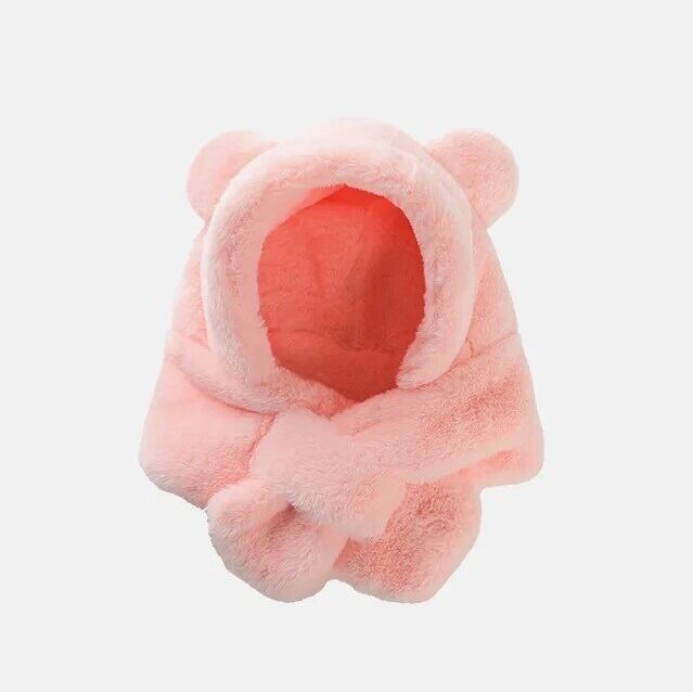 送料無料 4カラー キッズ もこもこくまさんマフラー付き帽子 韓国子供服 46cm~50cm 1歳~2歳目安